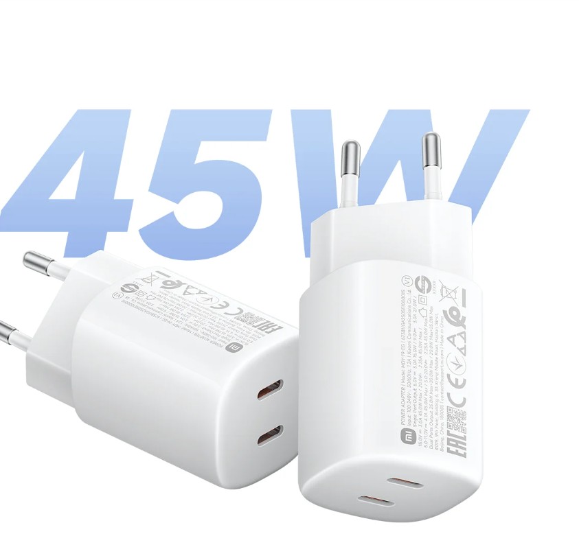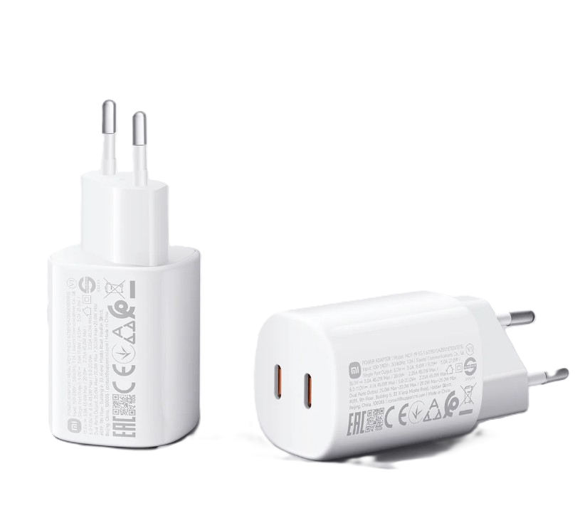 Der Xiaomi 45W Nano Turbo Charging Power Adapter (2-Port) ist eine ultraschnelle, kompakte und vielseitige Ladelösung mit zwei Typ-C-Anschlüssen, mit der Sie mehrere Geräte gleichzeitig mit einem einzigen Ladegerät aufladen können.