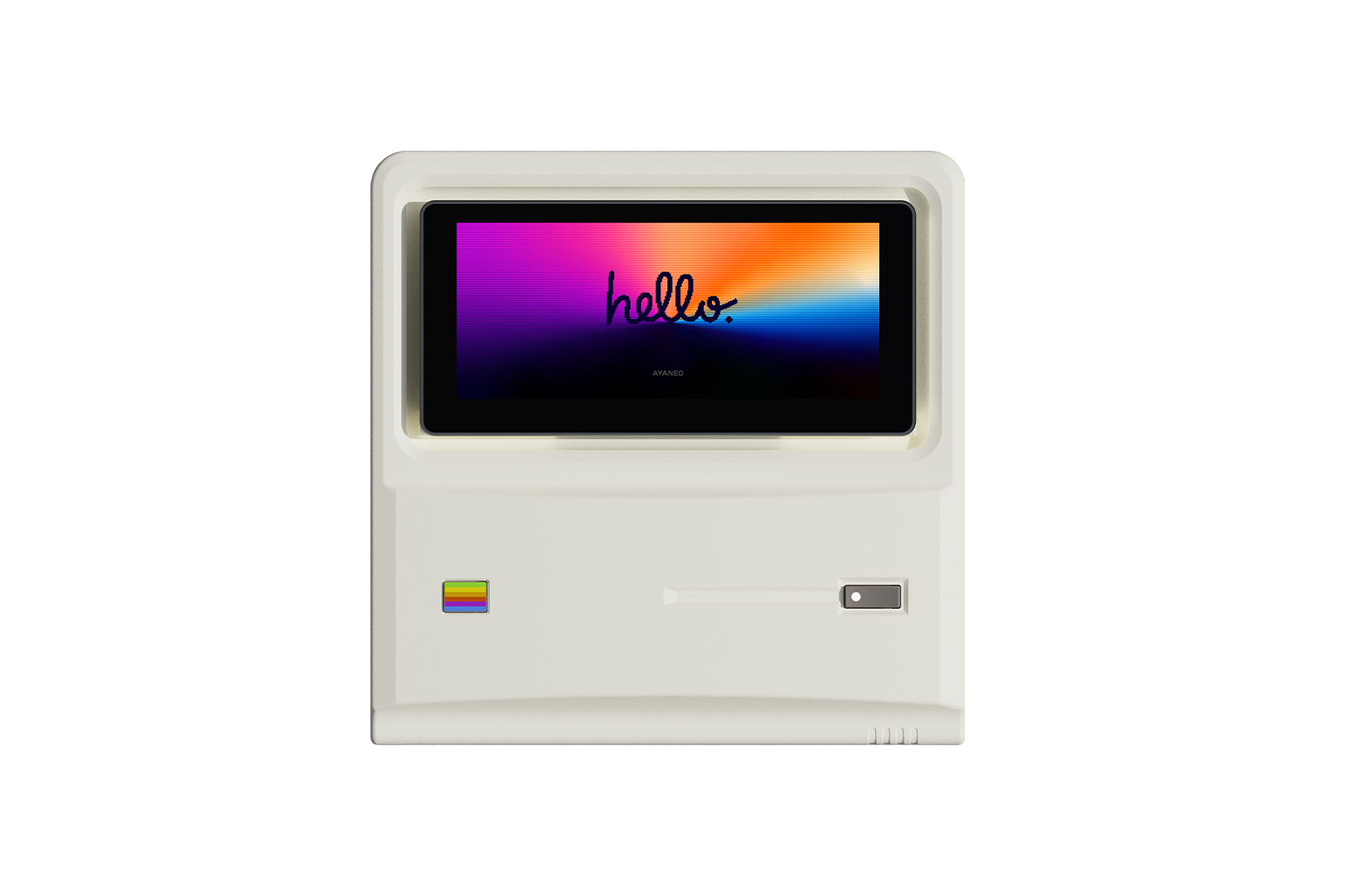 The AYANEO Retro Mini PC AM01S is much more than a small computer; it's a tribute to 1980s computing that hides surprising performance. Its design, inspired by classic computers like the original Macintosh, is pure visual nostalgia. With its creamy gray tone and rounded lines, it's a compact collector's item that fits in the palm of your hand. What's more, it's very clever: it includes a adjustable hinge to tilt the screen and a system of dual fan which keeps the equipment cool without breaking its retro aesthetic.