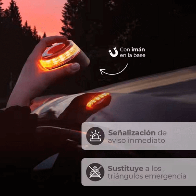 This device features a compact, lightweight, and durable design, ideal for storing in the glove compartment or vehicle's storage area. Its round shape and magnetic base allow for quick and secure attachment to the car's roof in case of a breakdown or accident. Its high-intensity flashing amber light offers 360-degree visibility, visible from over a kilometer away, even in low-visibility or adverse weather conditions.
