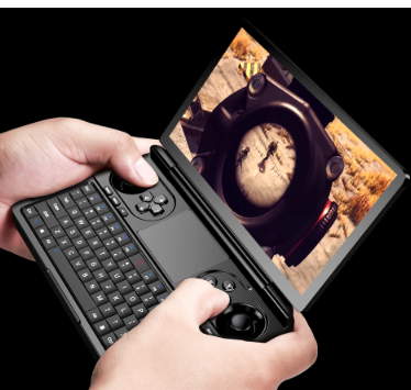 The console adopts a mini-laptop folding design, making it very easy to carry and use. It is built with a mix of magnesium alloy and ABS, which achieves a balance between strength and lightness. The keyboard spans almost the entire body and is a true QWERTY style.