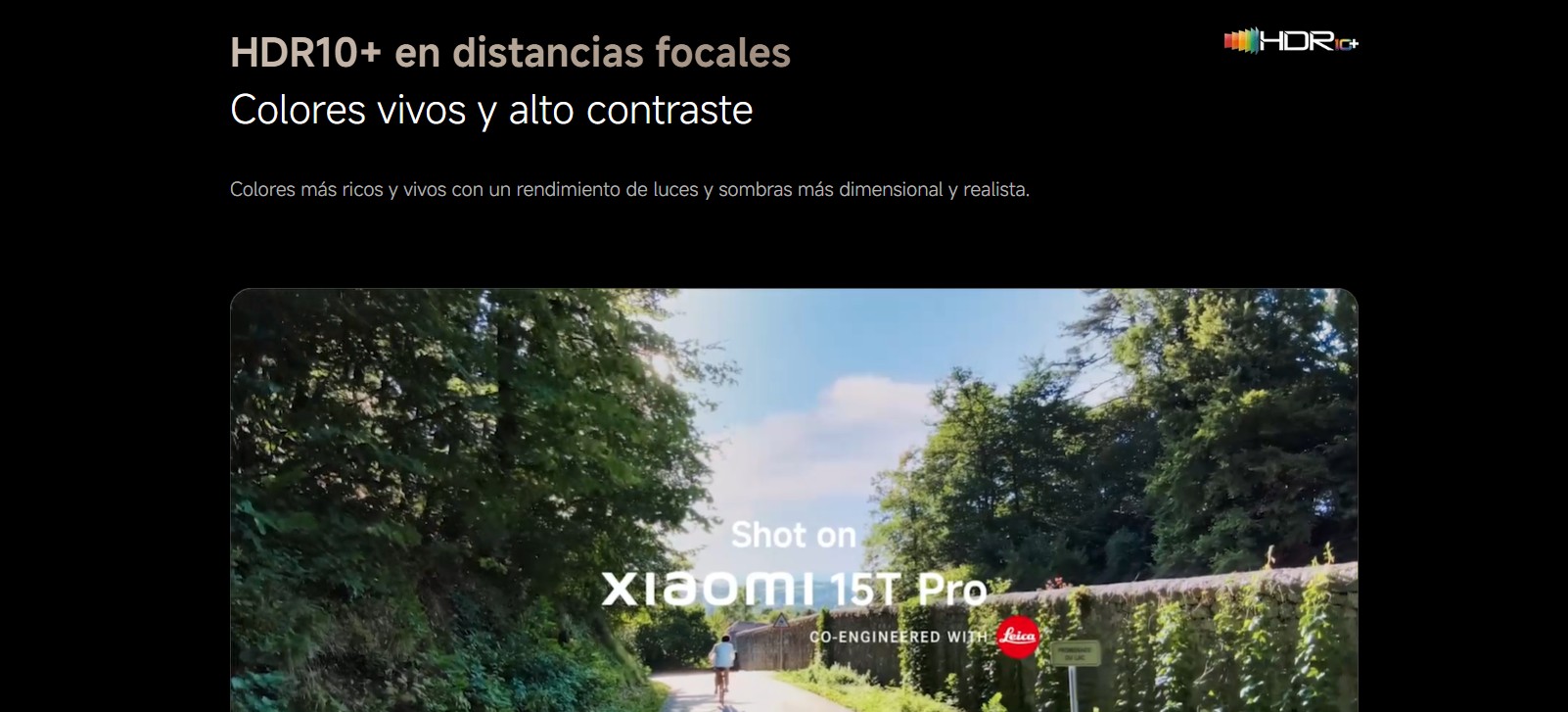As for the video on the rear camera of the Xiaomi 15T Pro we have One-Click AI Cinema: Magic Zoom, Slow Shutter, Time Freeze, Night Time-lapse, Parallel World, Video Freeze Frame. On the other hand also HDR video, professional time-lapse, Vlog mode, dual video, Video edition, professional video mode, video record format, Slow motion video: 120fps, 240fps, 960fps.