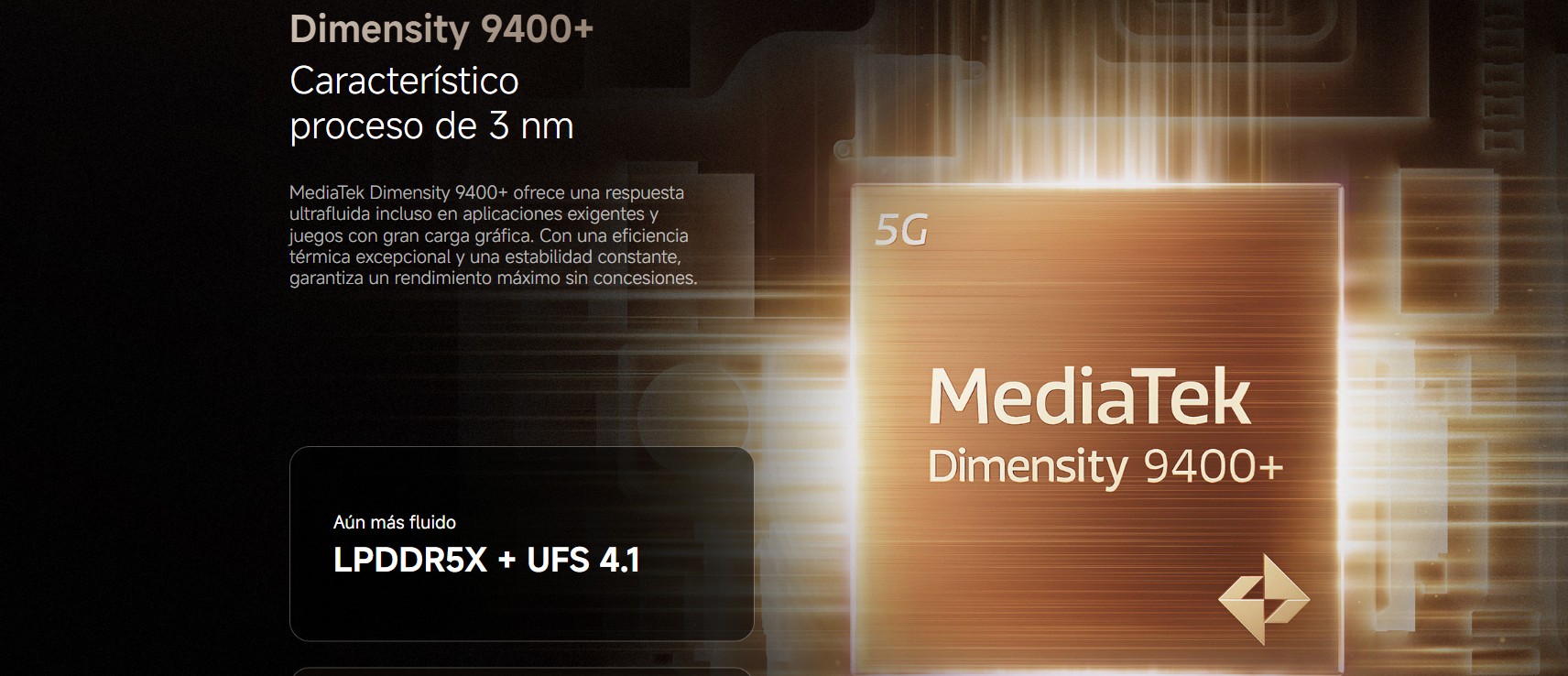 - MediaTek MediaTek Dimensity 9400+ 3nm manufacturing process up to 3.73GHz