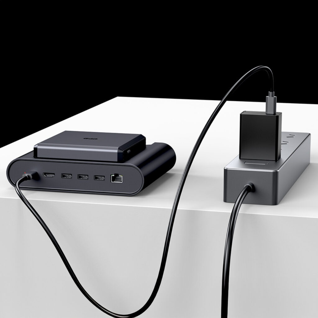 Il comprend également un Ports USB 4 ultra-rapides, avec des vitesses allant jusqu'à 40 Gbps, idéal pour connecter des écrans externes, des accessoires hautes performances et même un GPU externe (tel que le GPD G1). De plus, ce port est compatible avec charge rapide (PD).