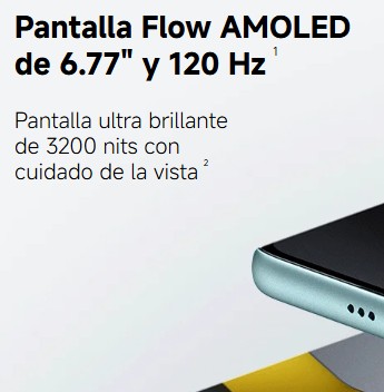 Uno de los puntos más destacados del POCO M8 5G es su pantalla Flow AMOLED de 6,77 pulgadas, que ofrece una experiencia visual muy superior. Cuenta con resolución Full HD+ (2392 × 1080 píxeles), lo que se traduce en buena nitidez tanto para texto como para contenido multimedia. La tasa de refresco de hasta 120 Hz aporta una fluidez notable al desplazarse por menús, redes sociales o al jugar, haciendo que todo se sienta más rápido y suave. Además, alcanza un brillo máximo de hasta 3200 nits, por lo que se puede usar sin problemas incluso bajo luz solar directa. La profundidad de color de 12 bits, la cobertura del espacio DCI-P3 y las certificaciones TÜV Rheinland garantizan colores vivos, buen contraste y menor fatiga visual durante usos prolongados.