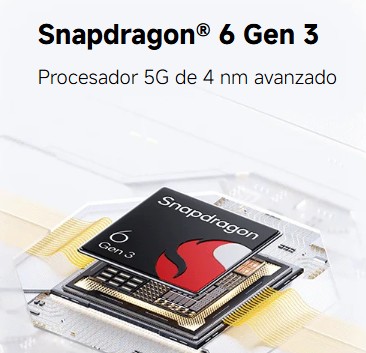 - Processeur Snapdragon 6 Gen 3 Octa-core hasta 2,4GHz