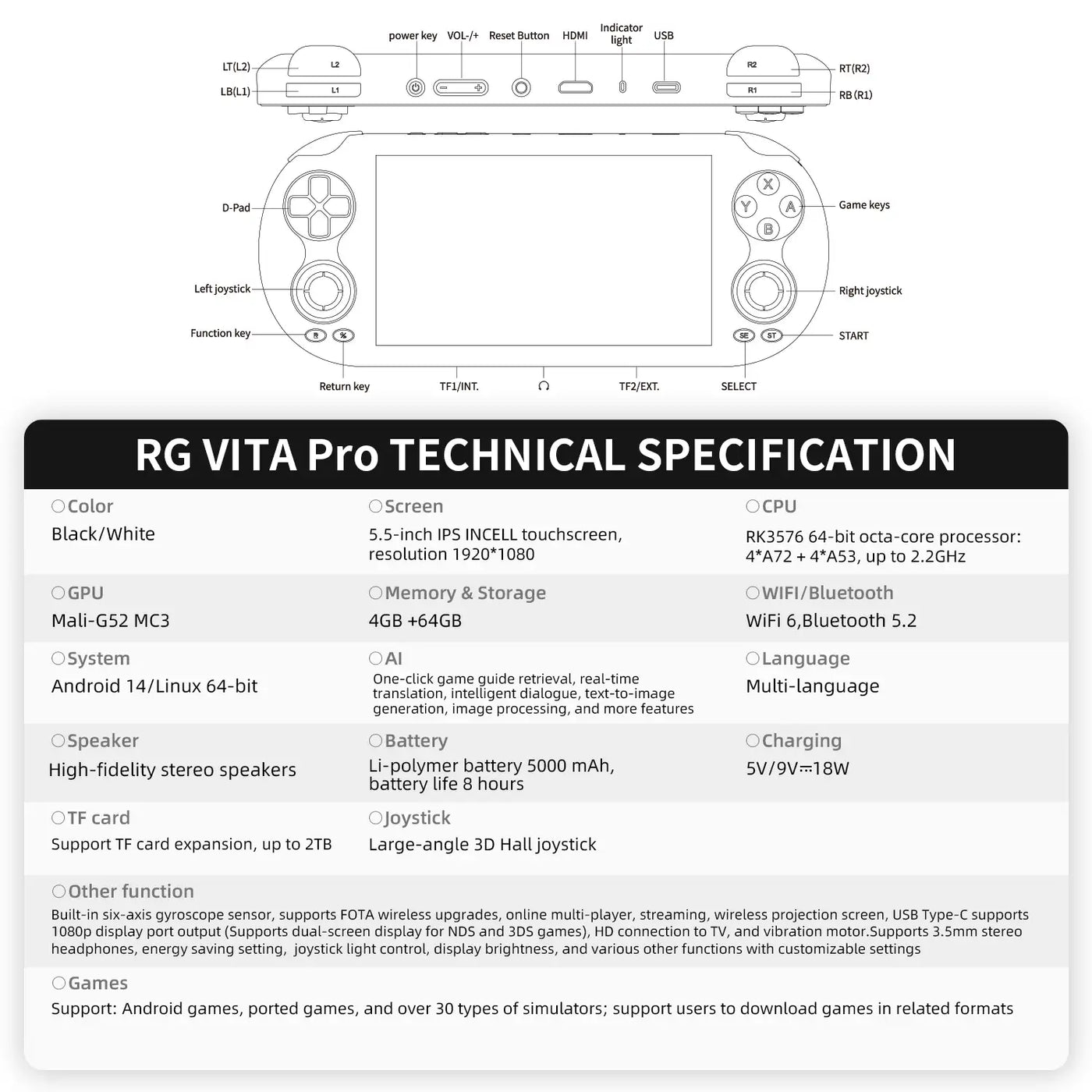 Comprar Anbernic RG Vita PRO Consola Retro Portable Dual System Android 14/ Linux 64-bit