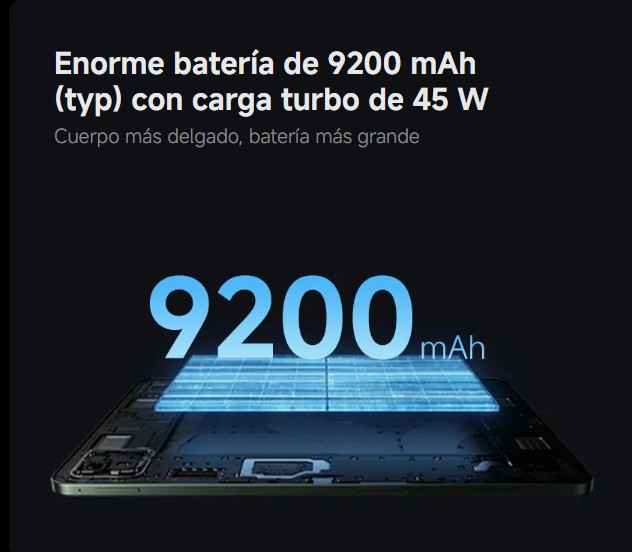 Il Xiaomi Pad 8 Pro Utilizza lo stesso pezzo di batteria di 9.200 mAh rispetto alla sorellina, il che è una notizia fantastica. Hai un sacco di energia per andare avanti. oltre 18 ore di visione di video o quasi 14 ore di riunioni online ininterrotte. Un'autonomia incredibile, che ti permette di uscire di casa senza caricabatterie e senza la costante paura di rimanere senza batteria nel momento più inopportuno.