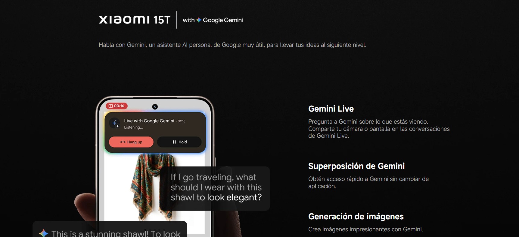 El corazón de este teléfono se bombea con un procesador Dimensity 8400 ultra con un proceso de fabricación de 4 nanómetros y bajo consumo. El procesador en este nuevo Xiaomi 15T alcanza una velocidad de reloj de hasta 3,25 Ghz repartidos en ocho núcleos. La velocidad está garantizada en este nuevo teléfono de Xiaomi que por supuesto te ofrecerá una experiencia tanto de juego, navegación y vídeo extraordinaria. Podrás instalar cualquier aplicación en este nuevo Xiaomi 15T y el rendimiento será óptimo. Entre otras cosas gracias a una tarjeta gráfica Mali-G720. Reparto de los 8 núcleos / 1 Arm Cortex-A725, hasta 3,25GHz / 3 Arm Cortex-A725, hasta 3,0 GHz / 4 Arm Cortex-A725, hasta 2,1GHz.