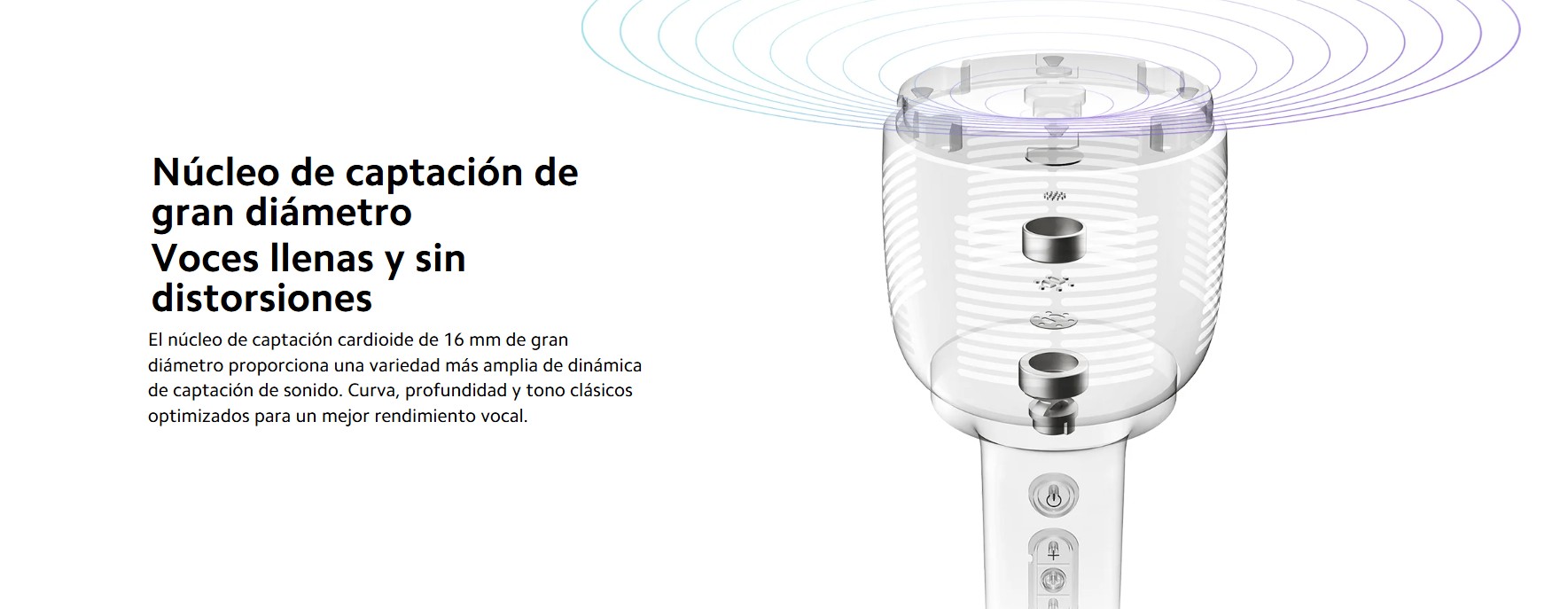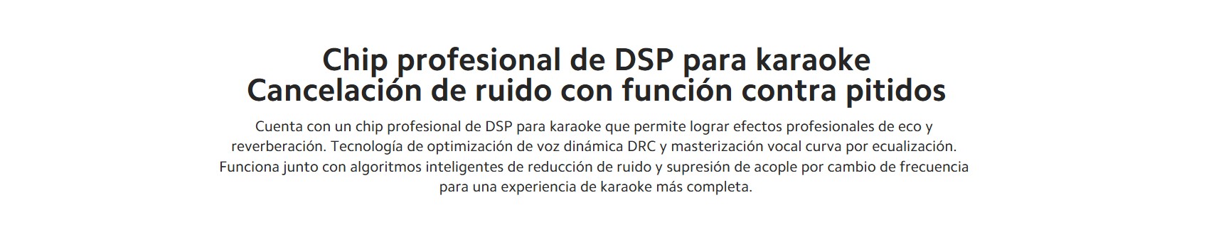 Este Xiaomi Karaoke Microphone viene con un chip especial para karaoke que hace que tu voz suene increíble, tiene eco y reverberación para darle profundidad y ese toque de escenario, mejora tu voz automáticamente para que se escuche más clara, fuerte y con mejor tono y por supuesto reduce ruidos molestos y sobre todo ese típico pitido de acople que molesta tanto así de esta manera podrás usarlo sin ningún tipo de distracciones.